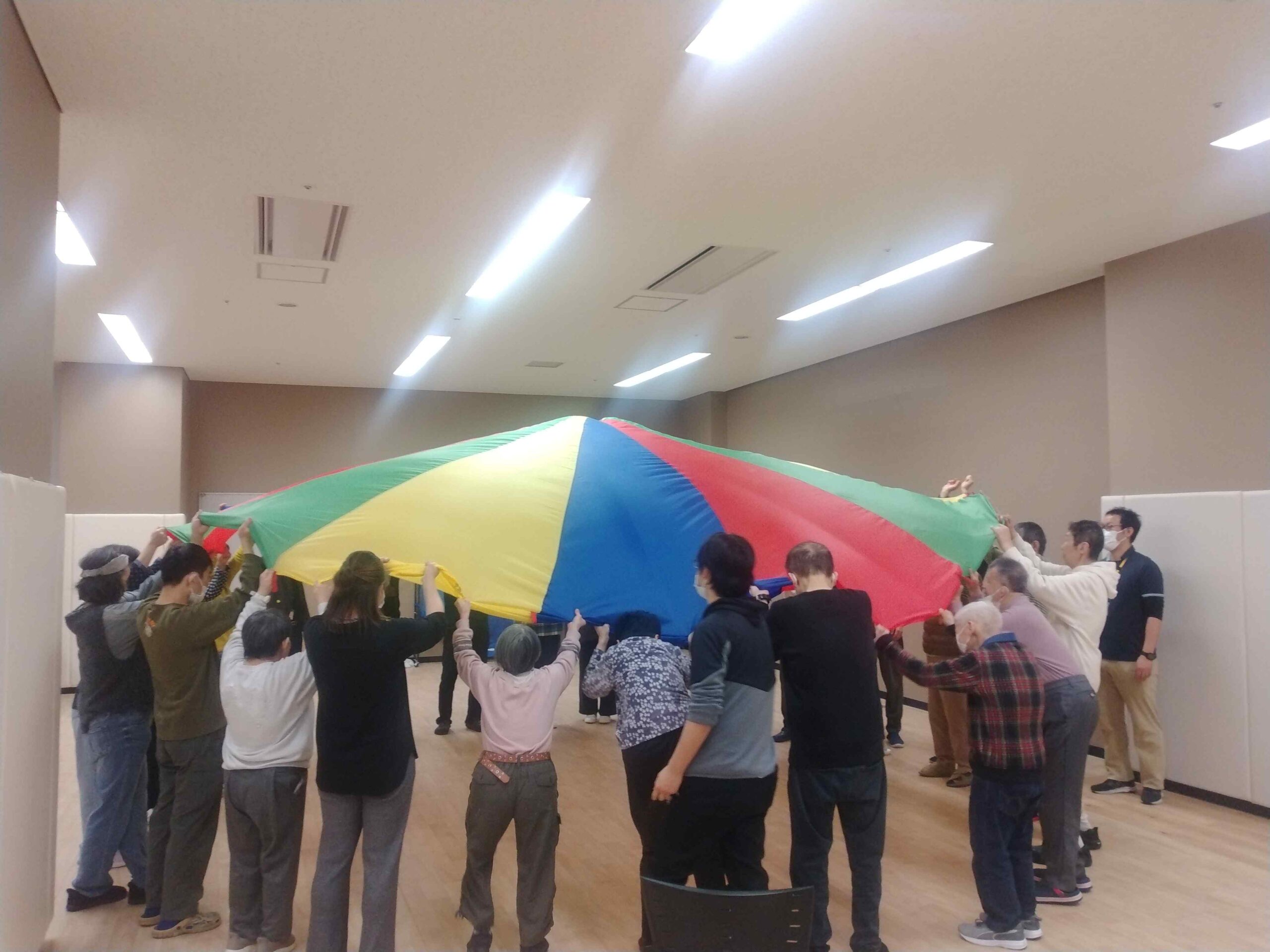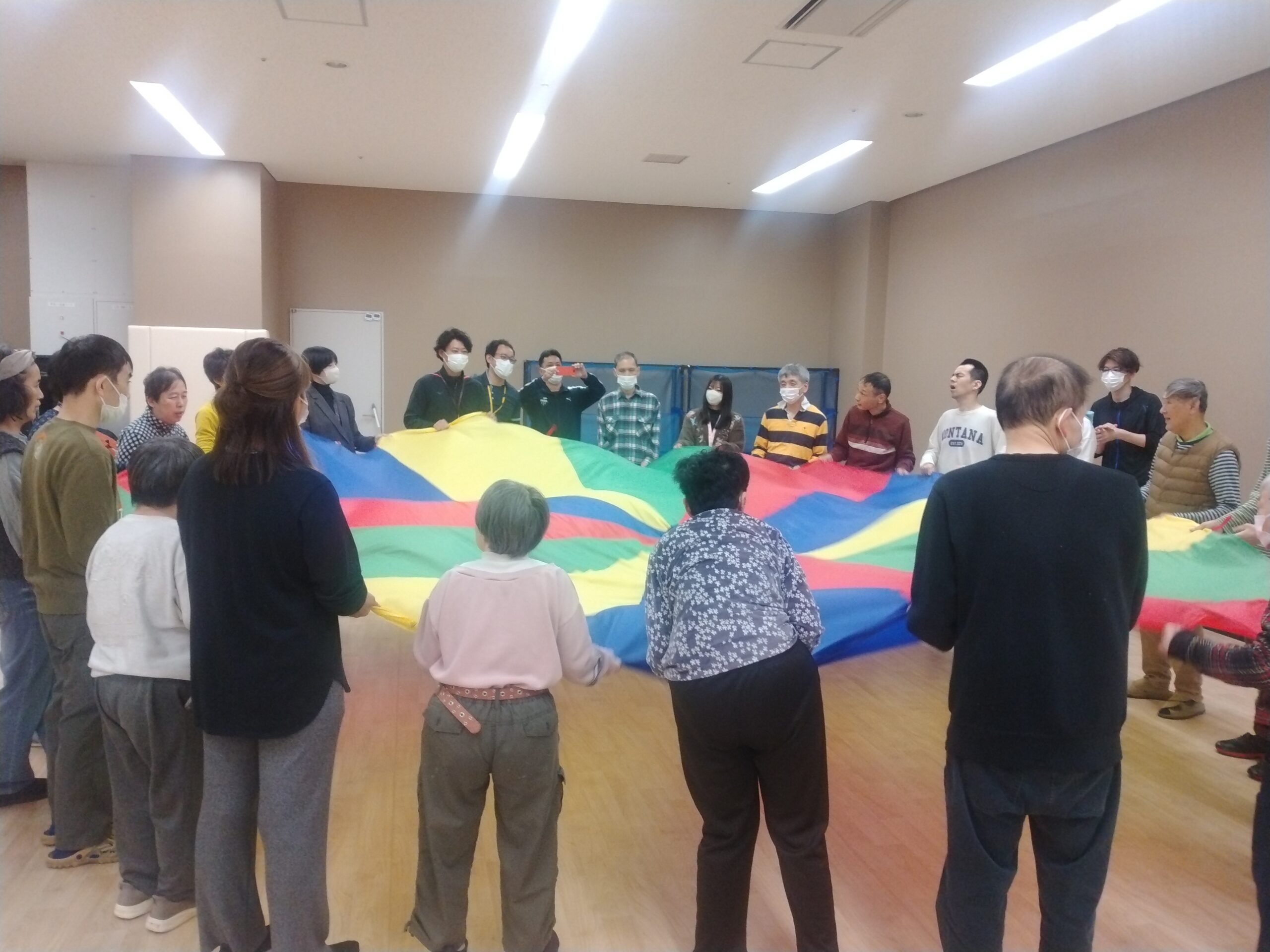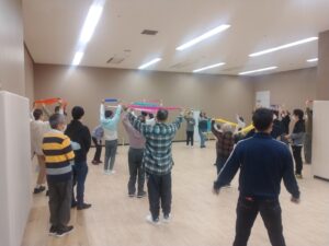 前月号でもお伝えしました。また,各フロア通信にも掲載の通り,2月26日の活動は味の素スタジアムに併設されているパラスポーツトレーニングセンターで行いました。徒歩と車に分かれて向かいました。なごみのこんなにも近くに素晴らしい施設がある!なごみの利用者はもちろんのこと,職員もこの施設を知り利用できたことは,良い経験になりました。場所が変われば気分も変わる。いつも以上に体を動かす時間を楽しめた,ご利用者の皆さんでした。