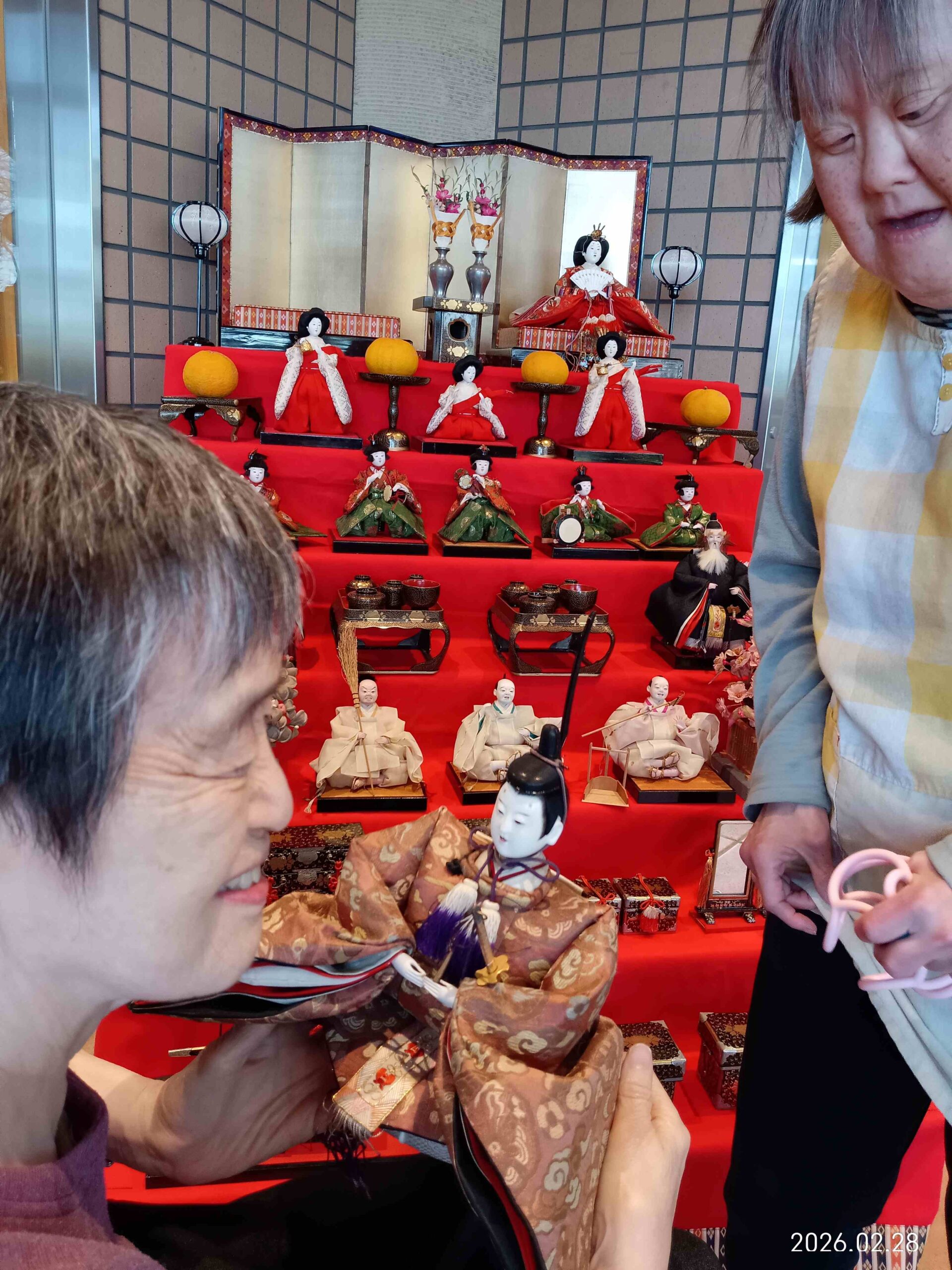 ご縁があり,昨年度からなごみにいらっしゃったお雛様,ご利用者の皆さんと飾らせていただきました。