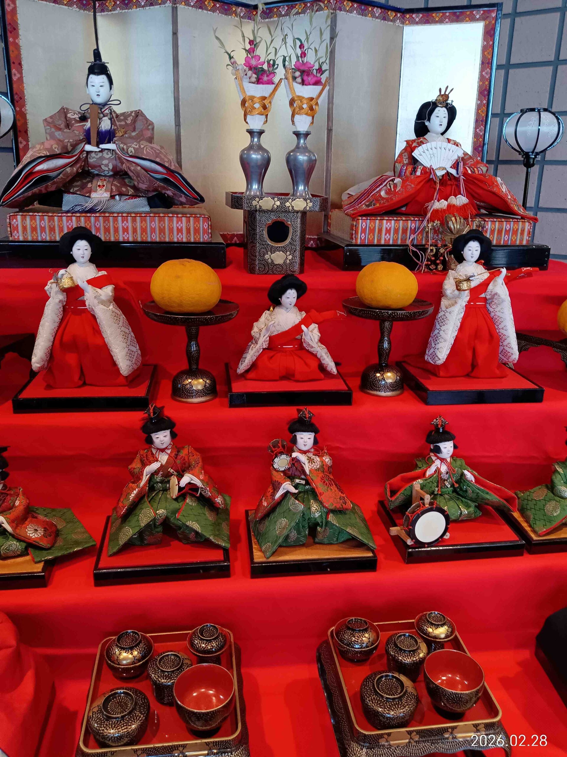 3月3日には女性陣がひな壇の前で記念撮影を行いました。